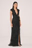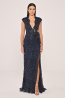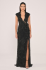 ٦٩١٩، ياقة على شكل V، كم قصير (كاب)، قصة عمودية، فستان سهرة
