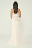 ياقة ديكولتيه، بدون أكمام، قصّة عمودية، فستان سهرة