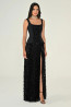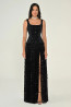 ياقة مربعة، بدون أكمام، قصة عمودية، فستان سهرة
