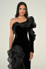 ٧٢٢٦، ياقة بحمالة على كتف واحد، كم على كتف واحد، قصة عمودية، فستان سهرة
