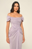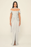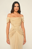 ياقة مكشوفة الكتفين، كم قصير، قصة حورية، فستان سهرة